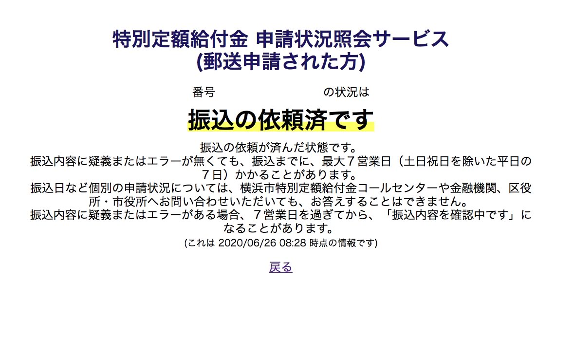 給付金、本日入金確認しました。