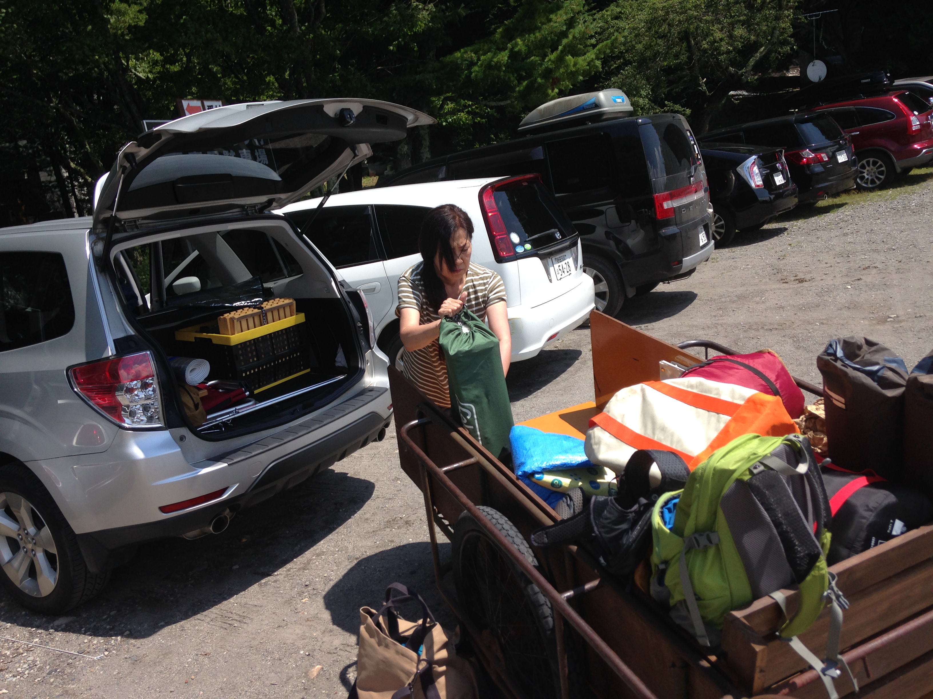 受付を済ませ、リヤカーを借りてテン場まで荷物を運びます。