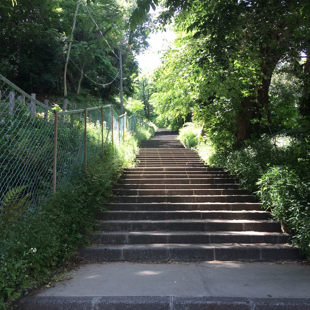 すっかり緑が濃くなった理工坂を上る。