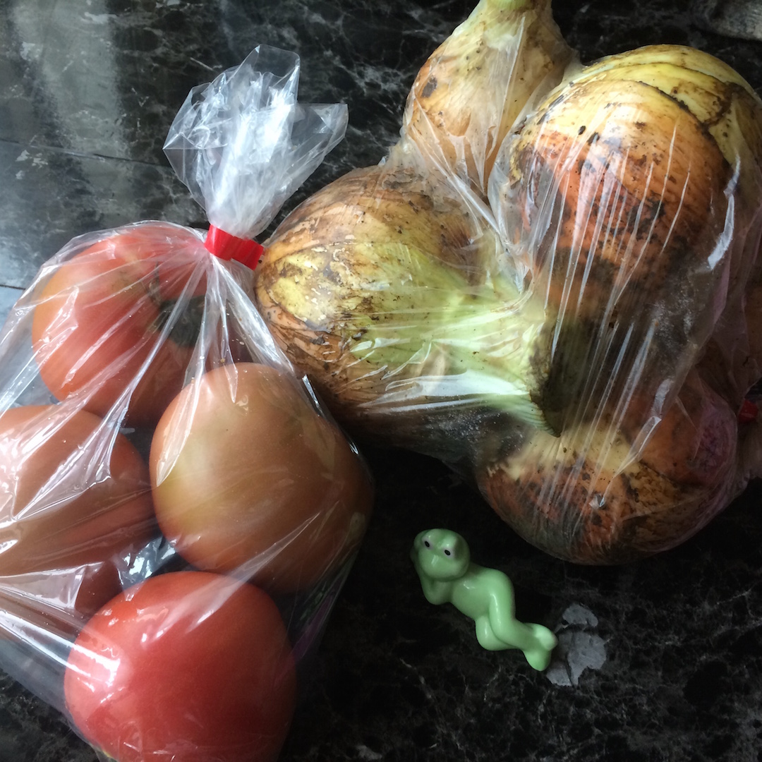 出た!新タマネギ、トマト。
