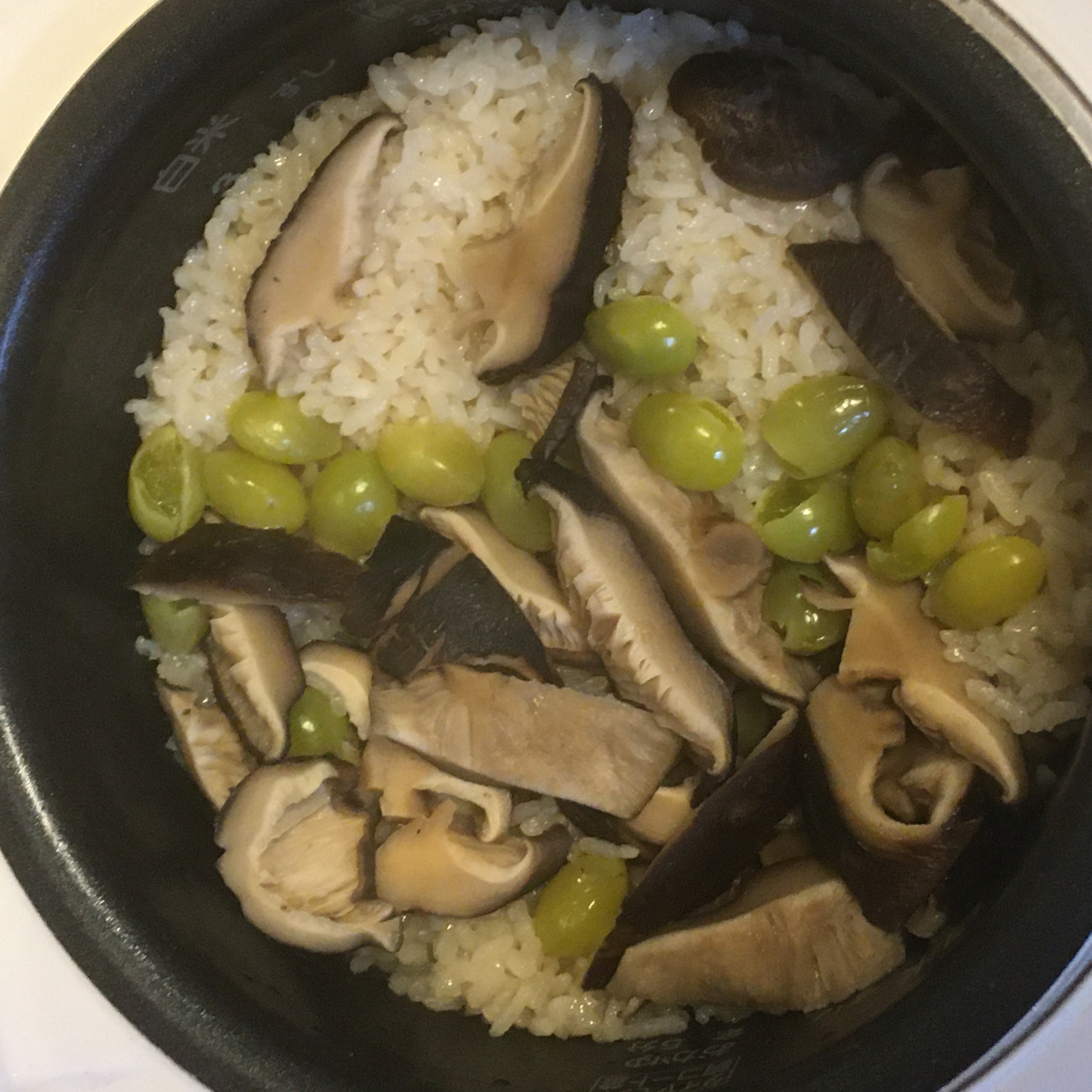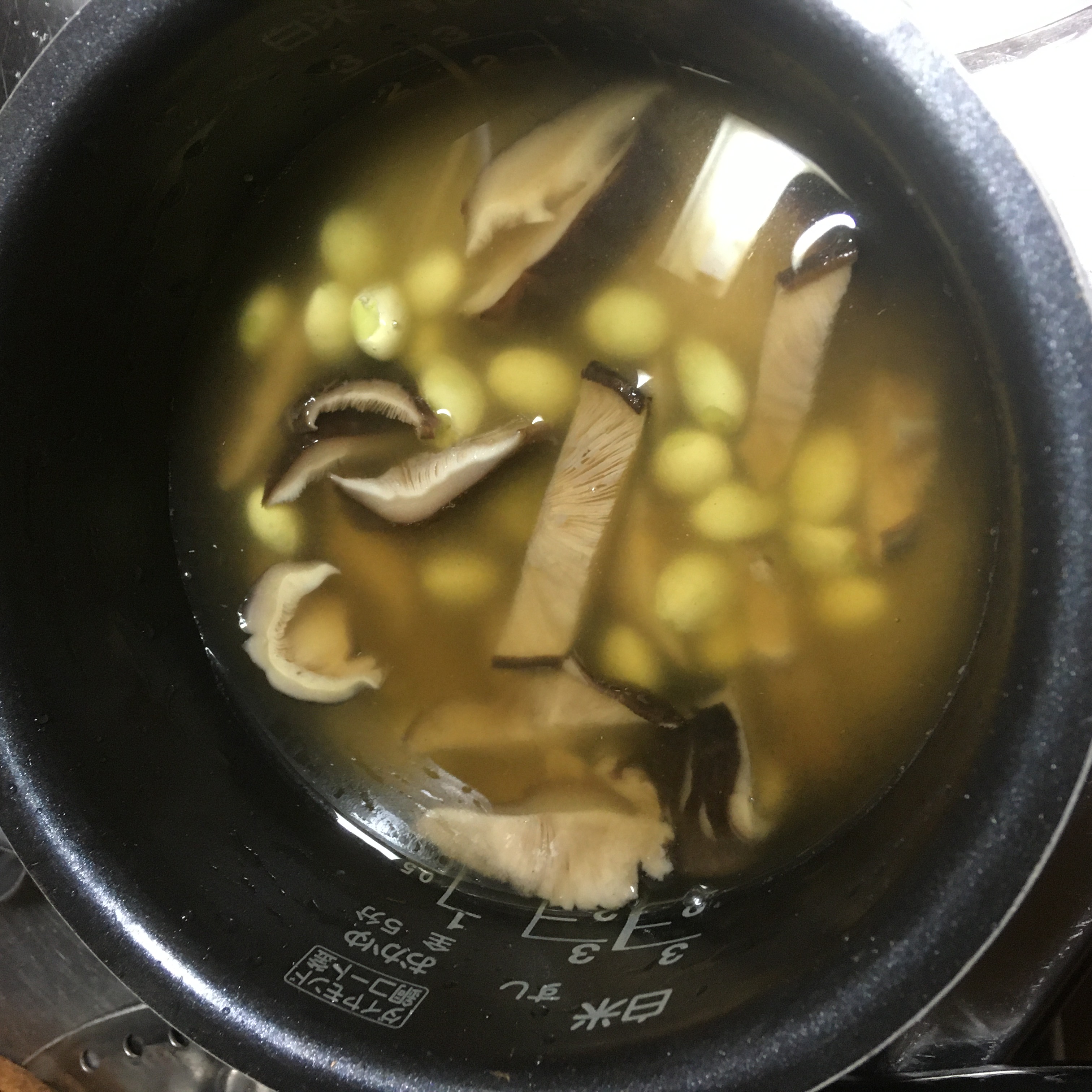 残っていた干しシイタケとギンナンで炊込ご飯を炊いてみた。
