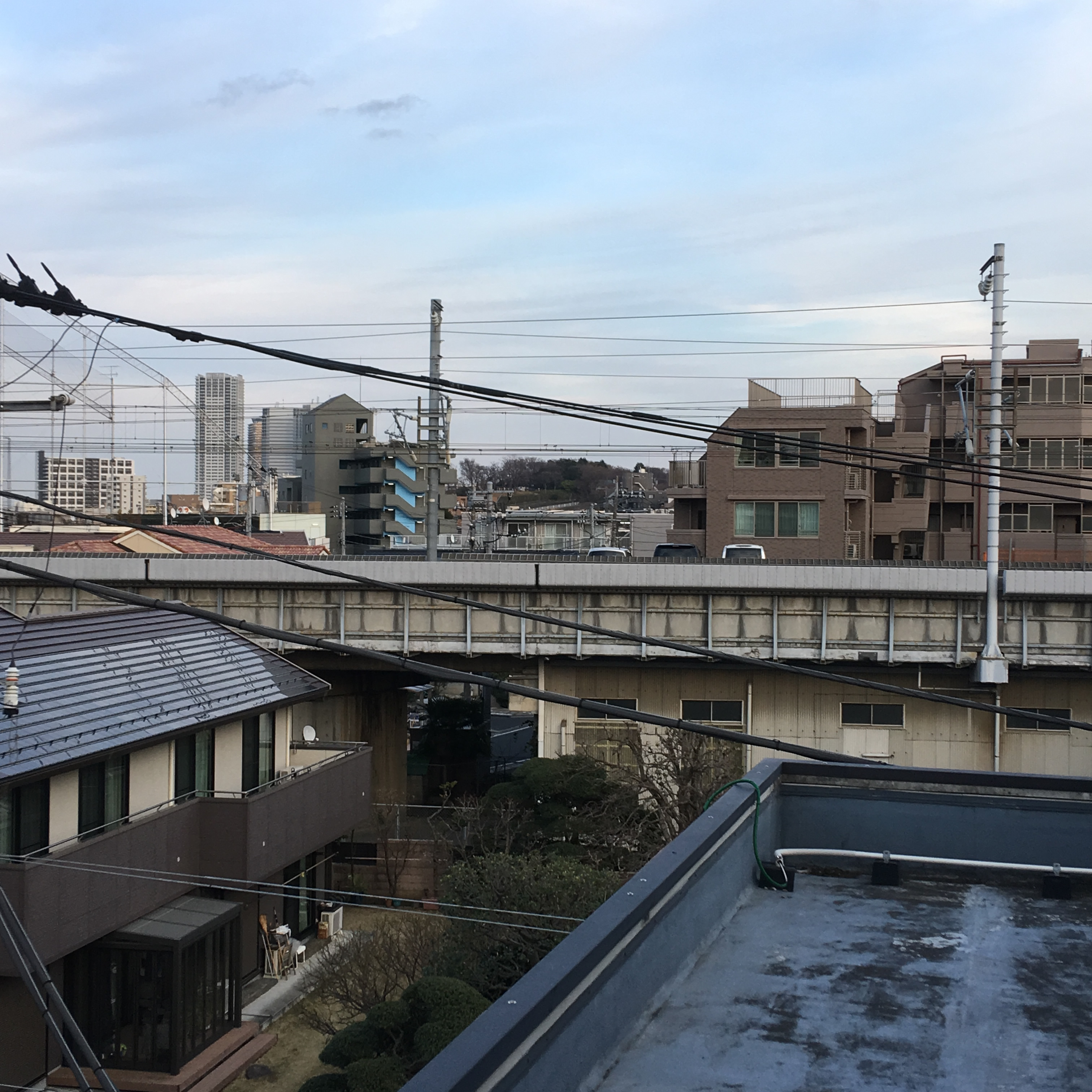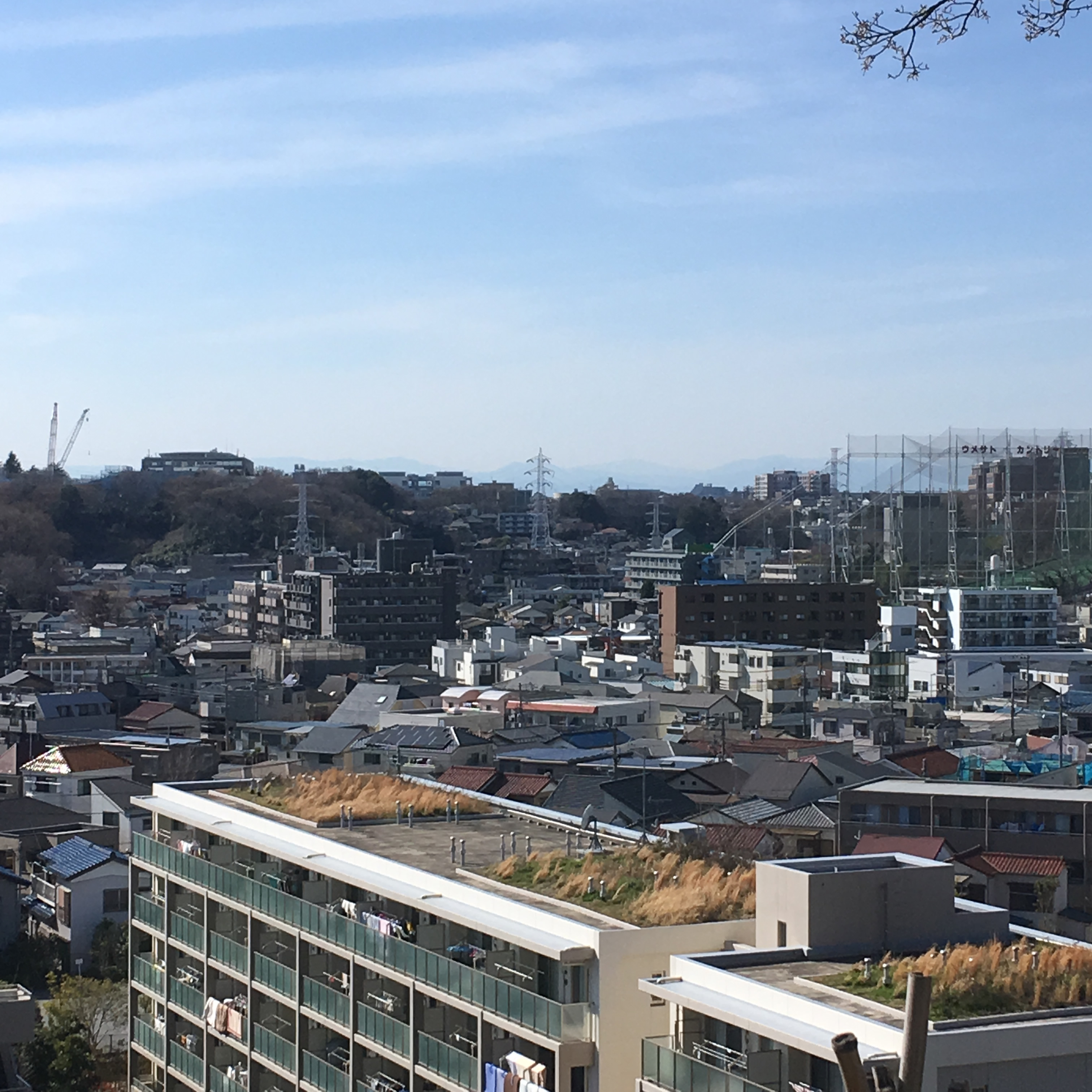坂を登りきると公園があって、日吉駅方向を見ると慶応大学の山が見えたり。