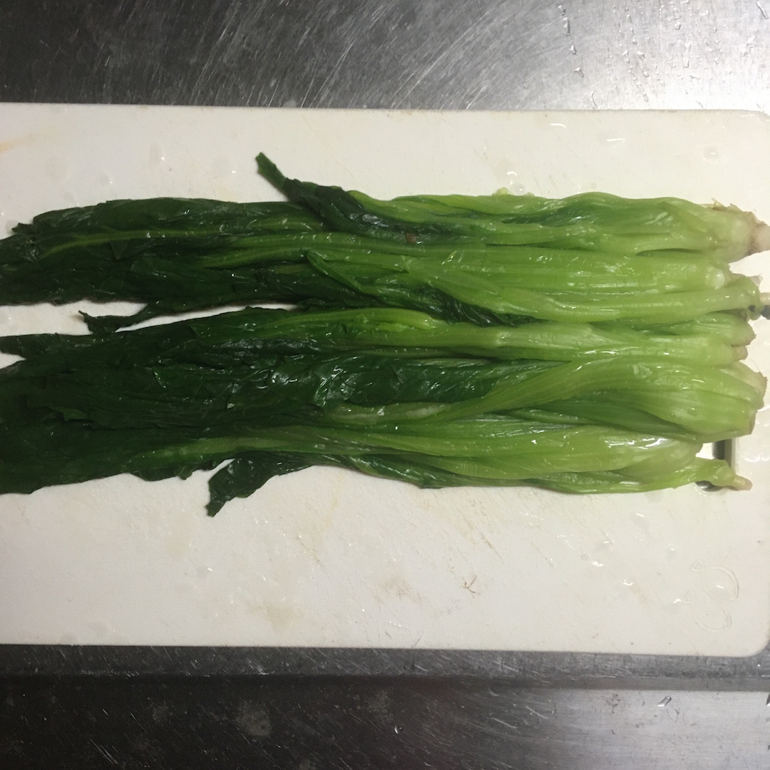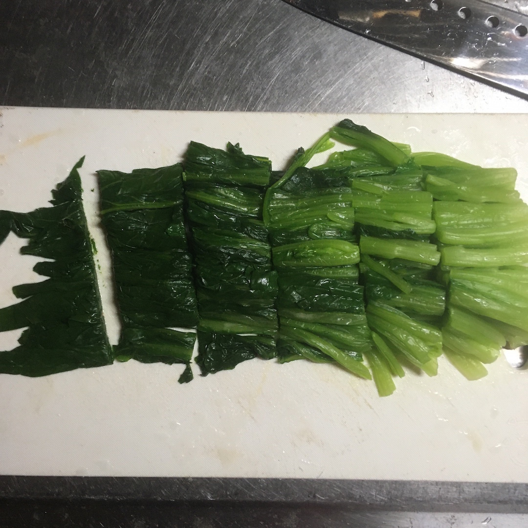 ひと煮立ちさせて冷ましから小松菜を30分くらい浸ける。