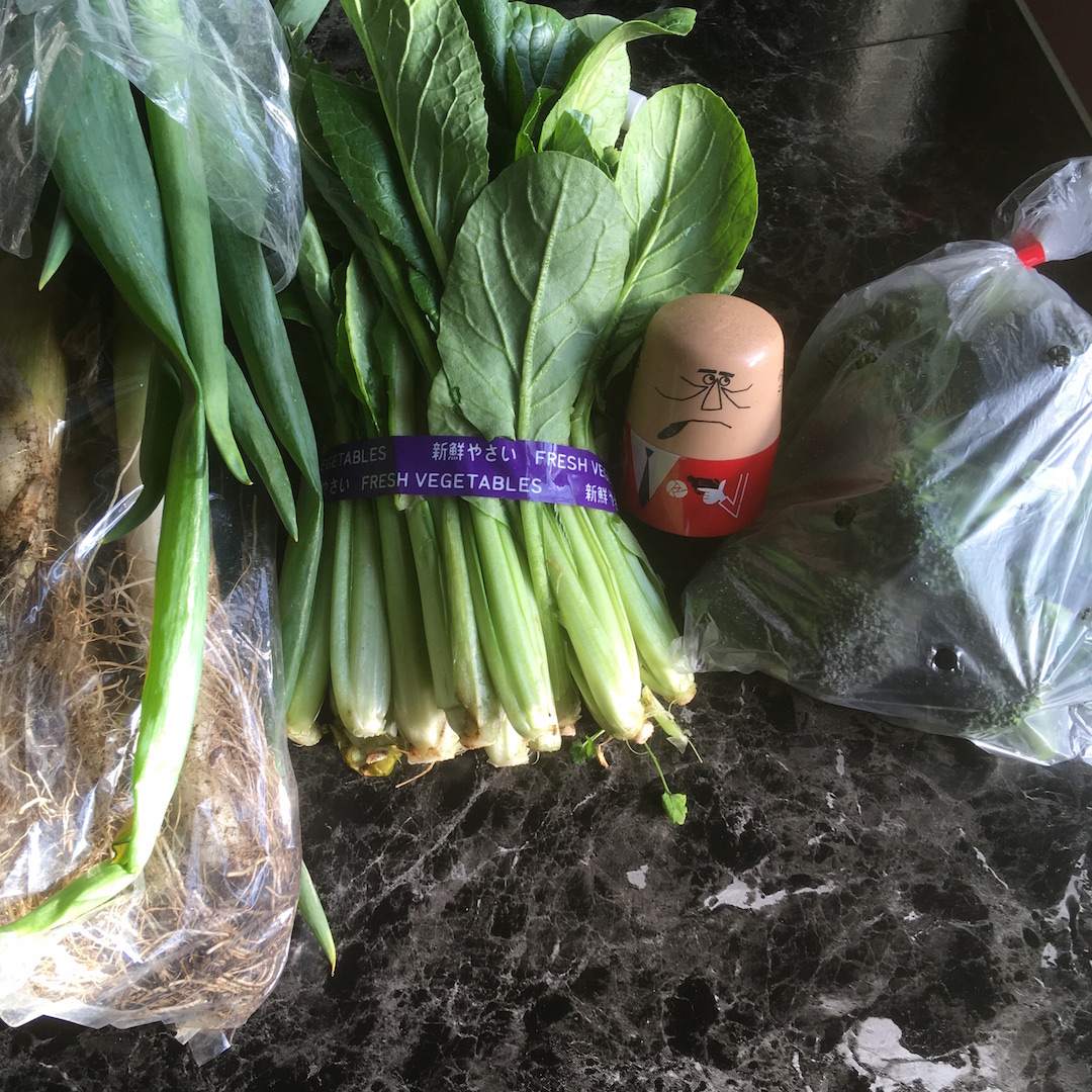 ネギ200円・小松菜100円・ブロッコリー100円。