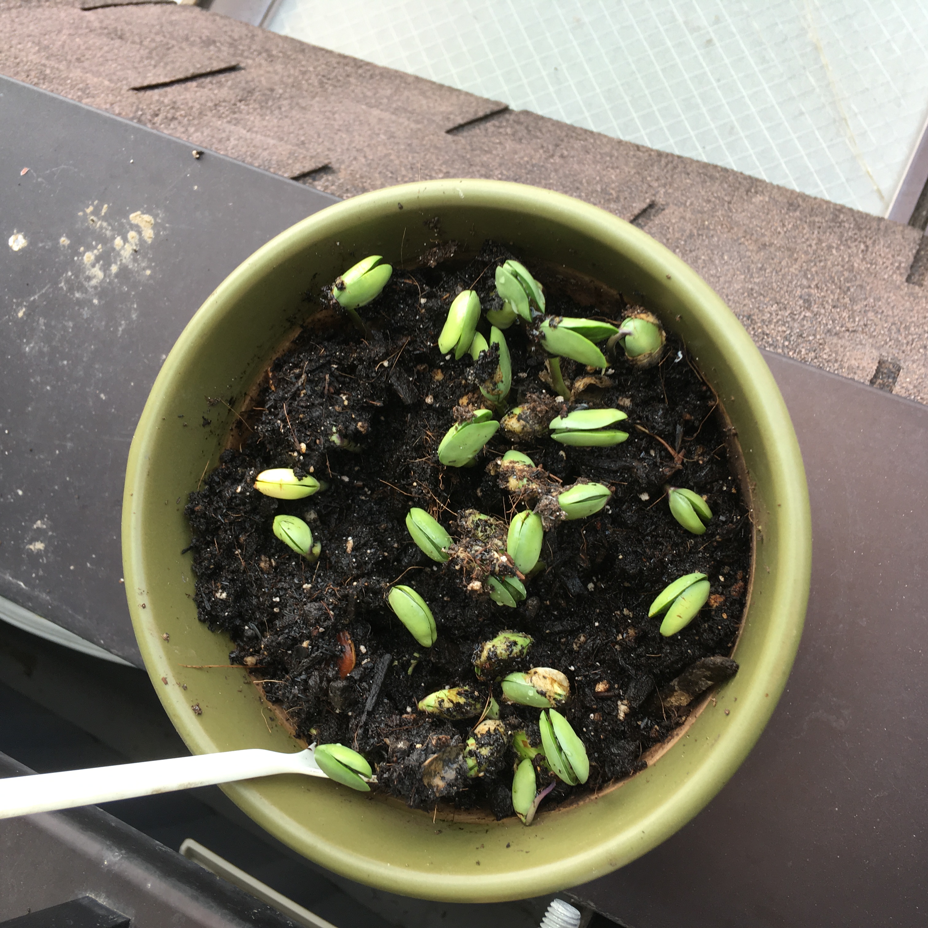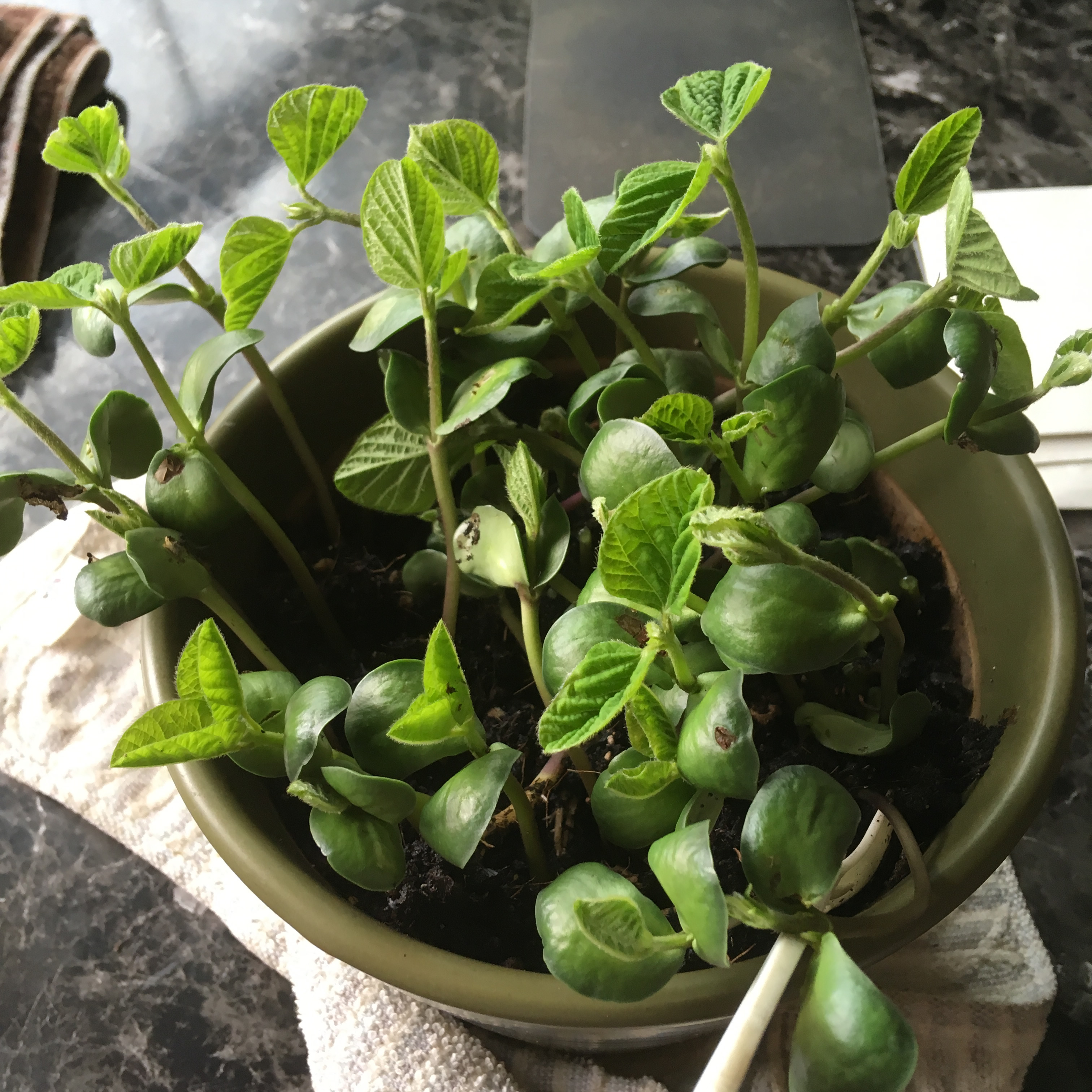 ベランダの鉢に植えたカボチャがなぜか枯れてしまったので、枝豆を植えてみた。