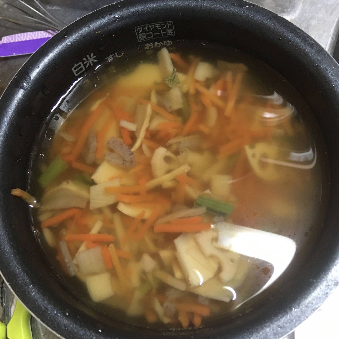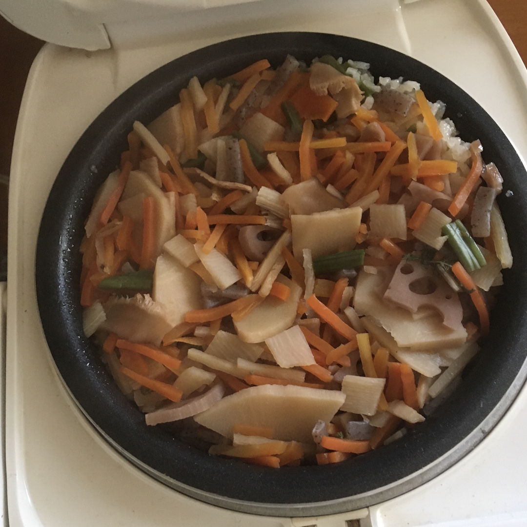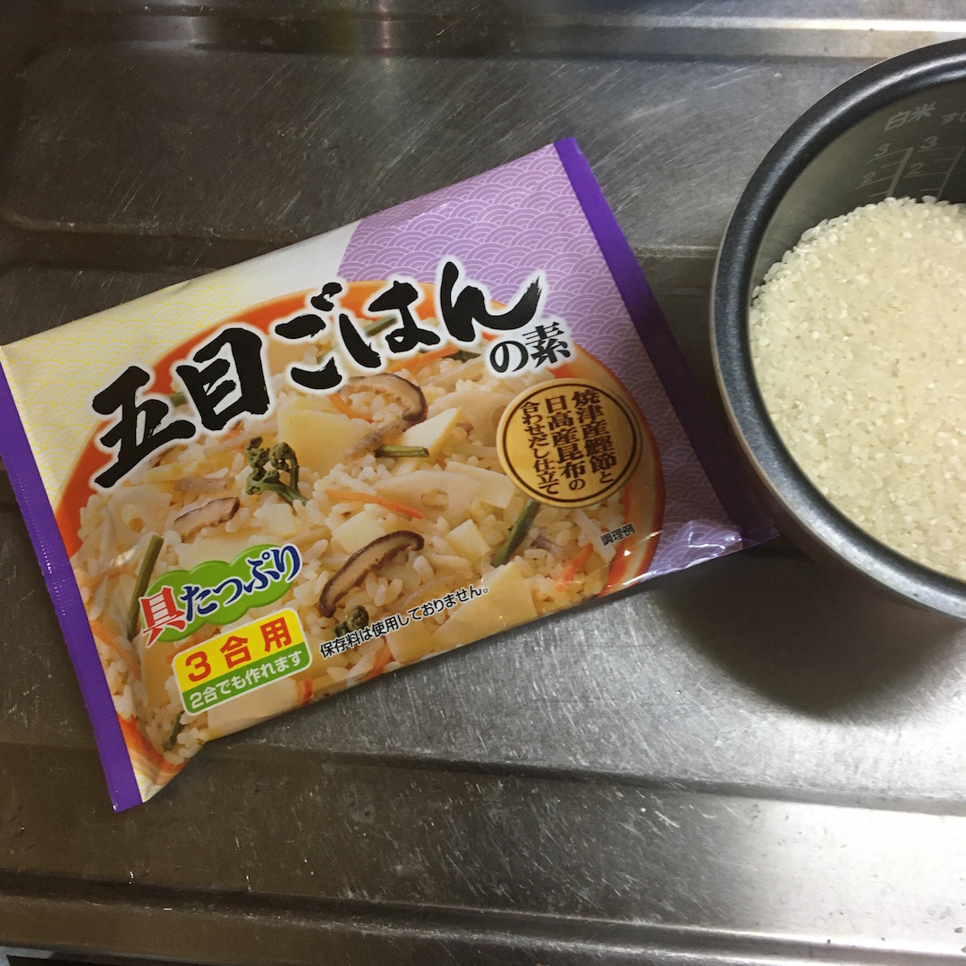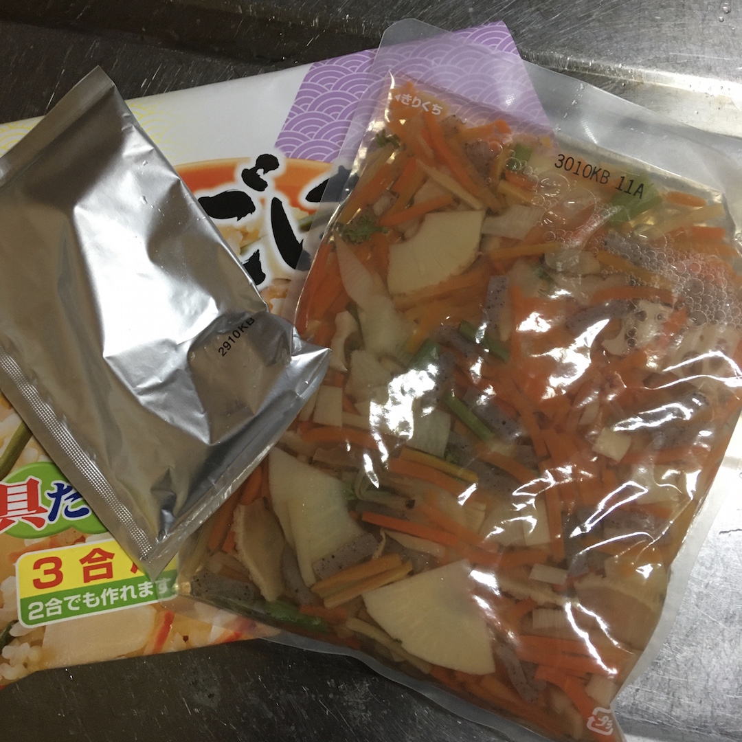 業務スーパーのネタ続きます。 以前から気になっていた炊き込みご飯の素。 147円だったかな。 試してみました。 左、出汁。右、具材。 米を研いだら水を切る。 で、まずは出汁を入れる。 その後、水は3合なら3合の線まで。 具材投入。 汁もあるので、けっこうな水分・・・本当にこれでいいのか? 炊けた! 3合炊きのお釜からはみ出るくらい。 ちょっとやっぱり柔らかいかな、ってのはあったけど。 でも、美味しい! 日本人に生まれて良かった! 水は少な目だね。