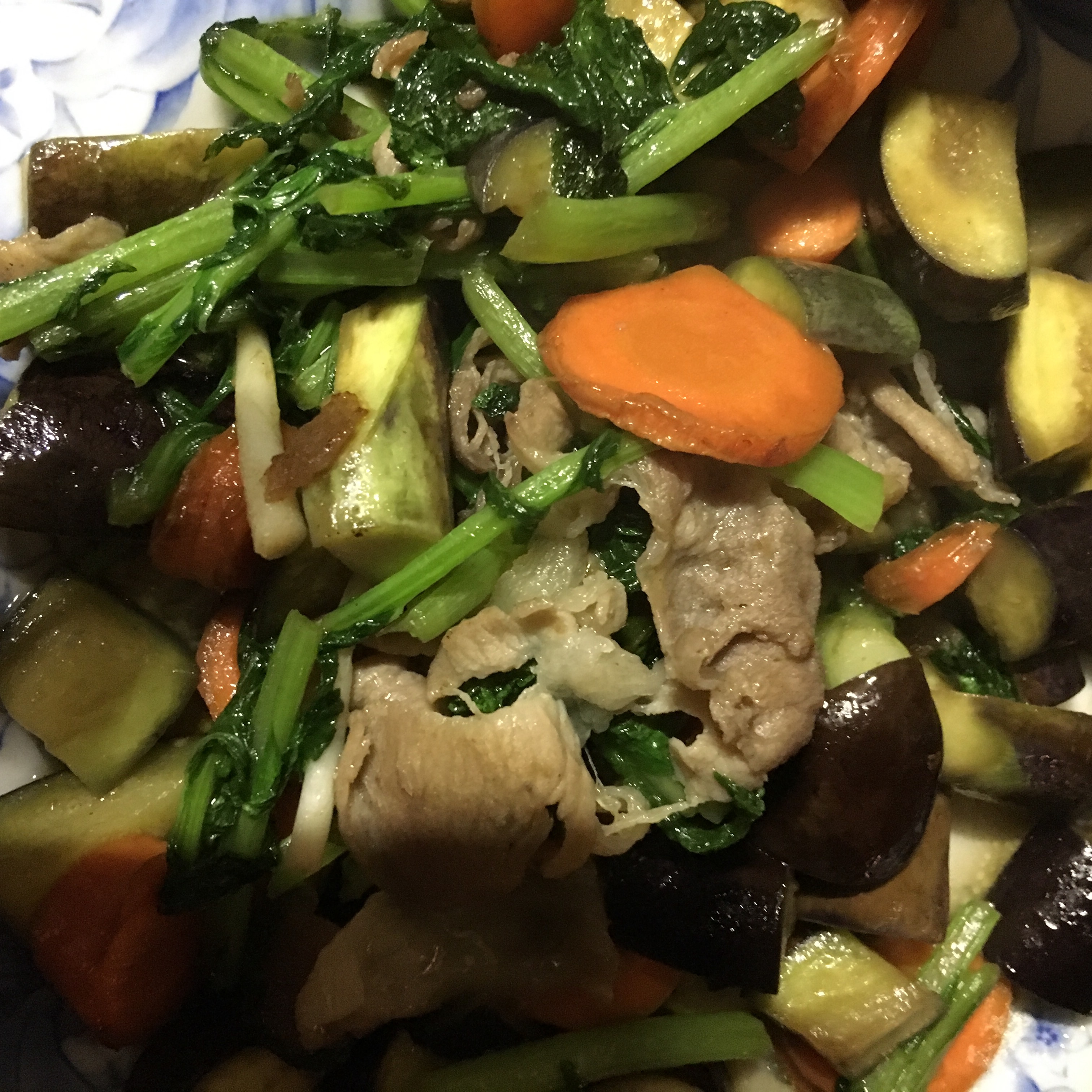 昨日買ってきた100円の間引き菜と150円の茄子。