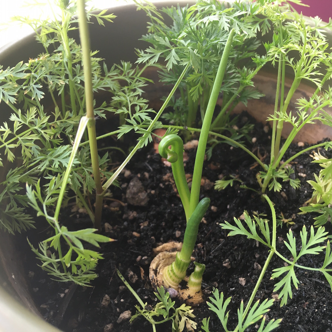 周りのニンジンはあまり陽に当たると元気がなくなるようだ。