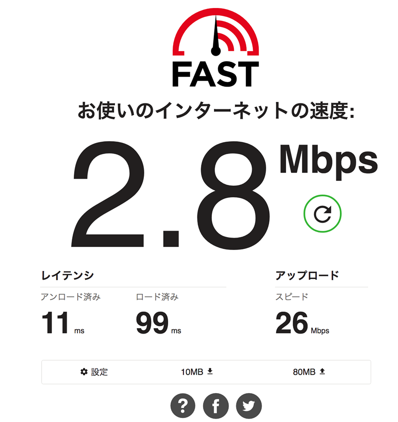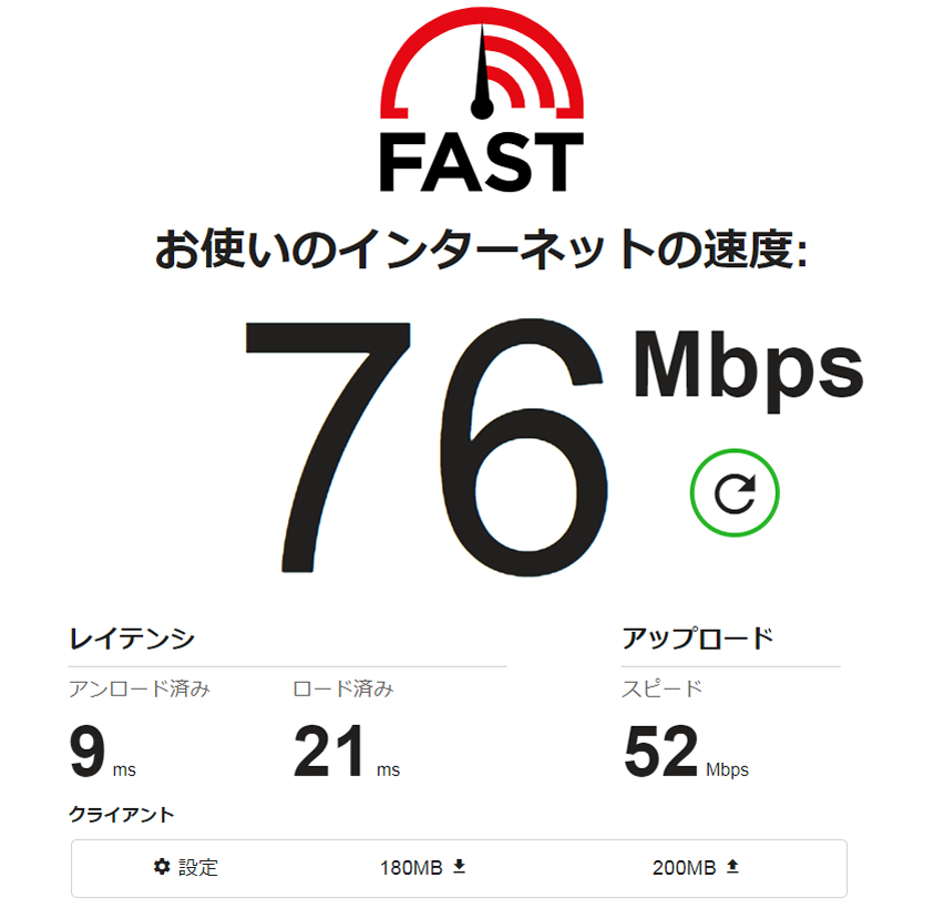 で、朝6時頃に有線LANに繋がってるマシンで計測。