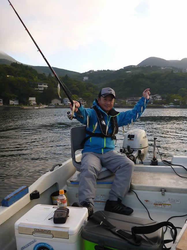 既に康友丸中島船長が元箱根湾でワカサギをやってます。