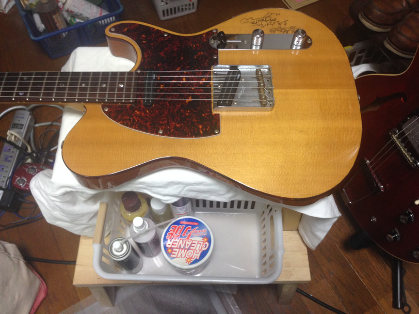 この借り(貰い)物(^_^;)のギターはウレタン塗装なのでポリッシュと指板はレモンオイルで奇麗になりました。