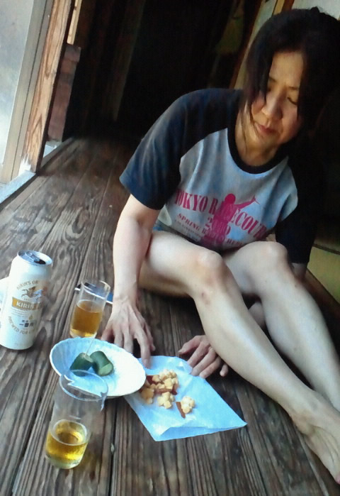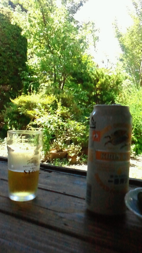 朝食を食べてボケ~っとテレビを観たりしてましたが、他にすることも無いのでシャワーしてから縁側でビールです(^_^;)