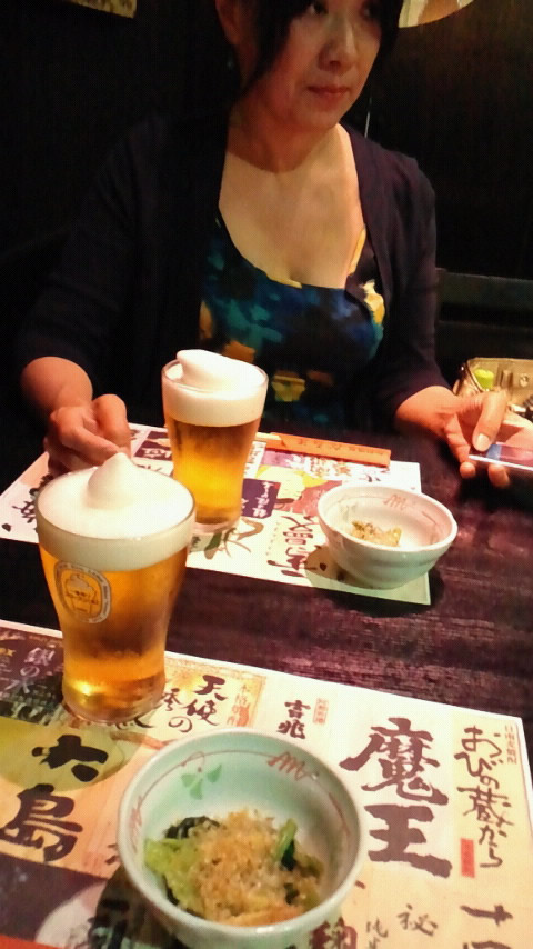 別室で2度寝をしていたあっちゃんもビールの気配がすると起きてきて乾杯です(^_^;)