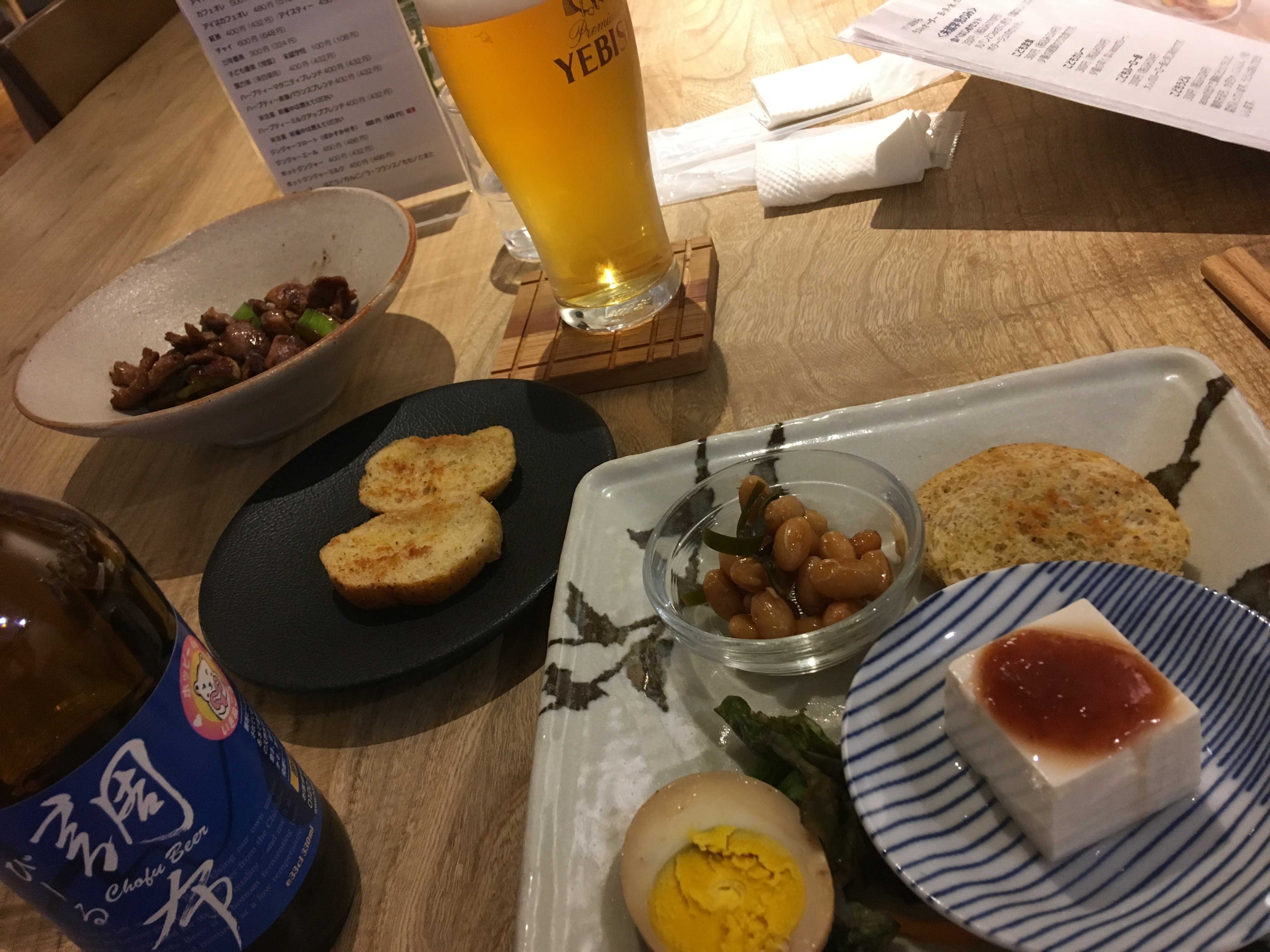 とても広いカフェで床も天然木、畳スペースもあったり。料理も調布ビールも美味しかった。