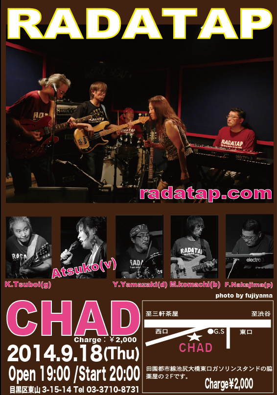 18日は池尻大橋CHADにてRADATAPのライブです。