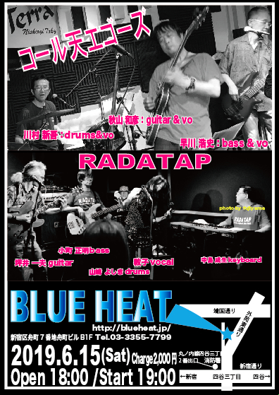 6月15日(土)は四谷三丁目荒木町BLUE HEATにてライブです。