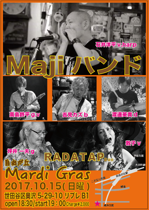 10月15日(日曜)自由が丘Mardi Grasマルディグラ。