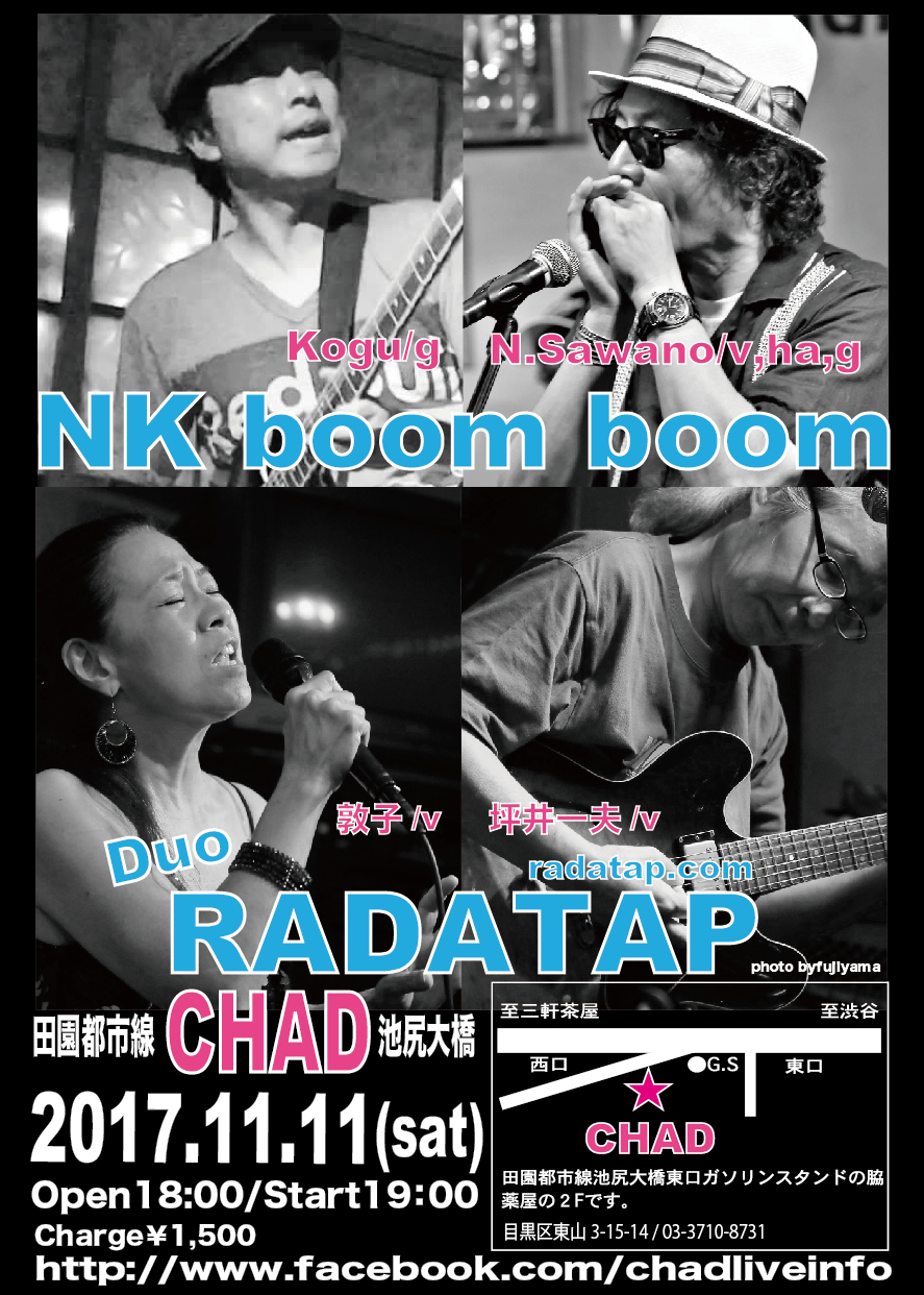 10月15日(日曜)は自由が丘マルディグラでRADATAP Duoのライブです。