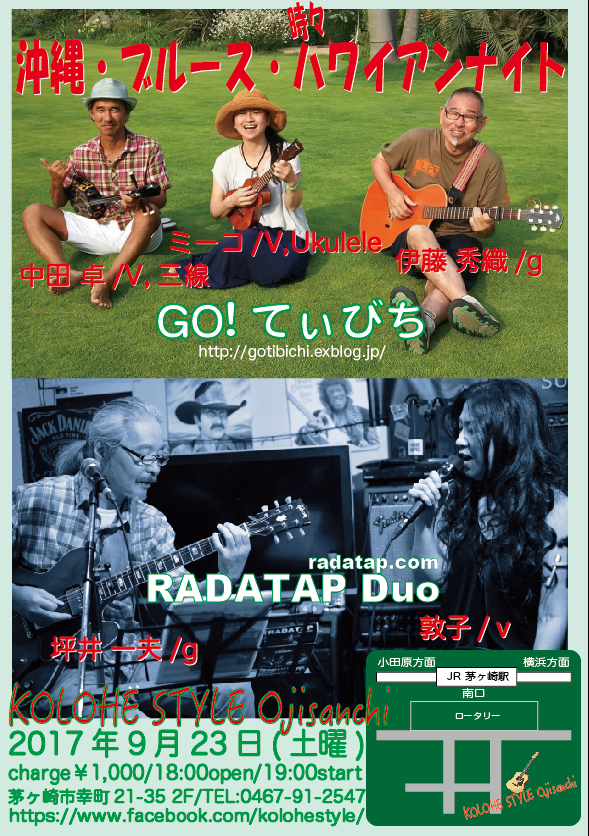 9月23日は茅ヶ崎KOLOHE STYLE Ojisanchi でRADATAP Duoライブ。