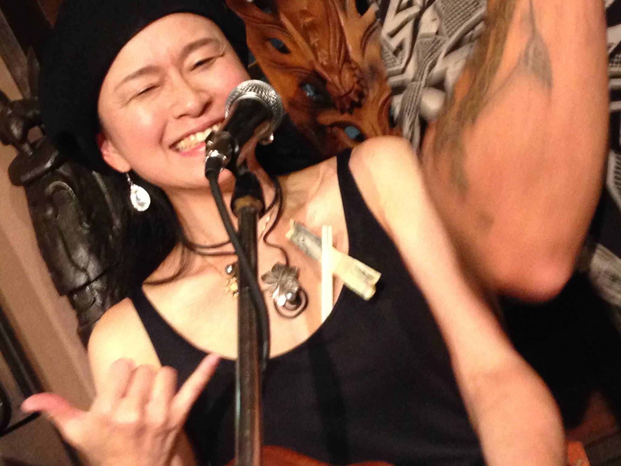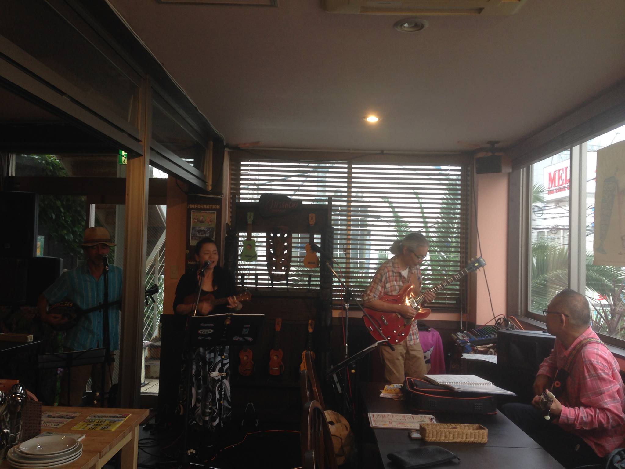 紅一点のミーコさんはこの日初めてリバーブのエフェクターを使用したそうで、お客様達に相当突っ込まれていましたね〜。