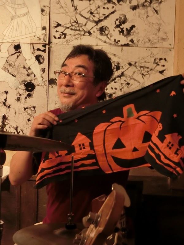 トレードマークと言っても良いのでしょう、山崎さんが演奏中に頭に巻く手ぬぐい。