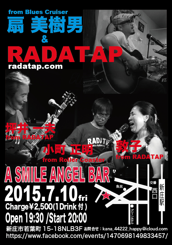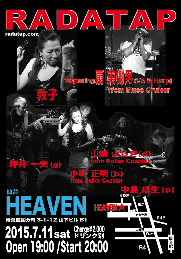 敦子・小町・坪井の3人と東北ナンバーワンブルースバンドBLUES CRUISERから扇"ミッキー"美樹男とのジョイントです。