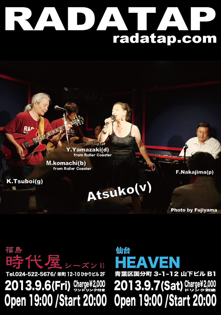 今回はRADATAPのフルメンバーではなく、ドラム阿久井喜一郎・ギター関雅樹両氏のサポートをいただきました。
