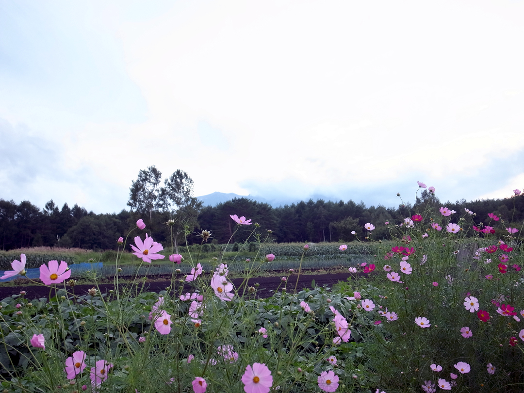 景色がガラッと変わり街道沿いには白樺やコスモス。畑には蕎麦、トウモロコシ。