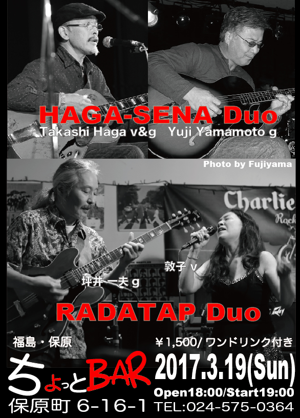 そして、次の3月19日は保原ちょっとBARでHAGA-SENA DuoとRADATAP Duoのライブです。