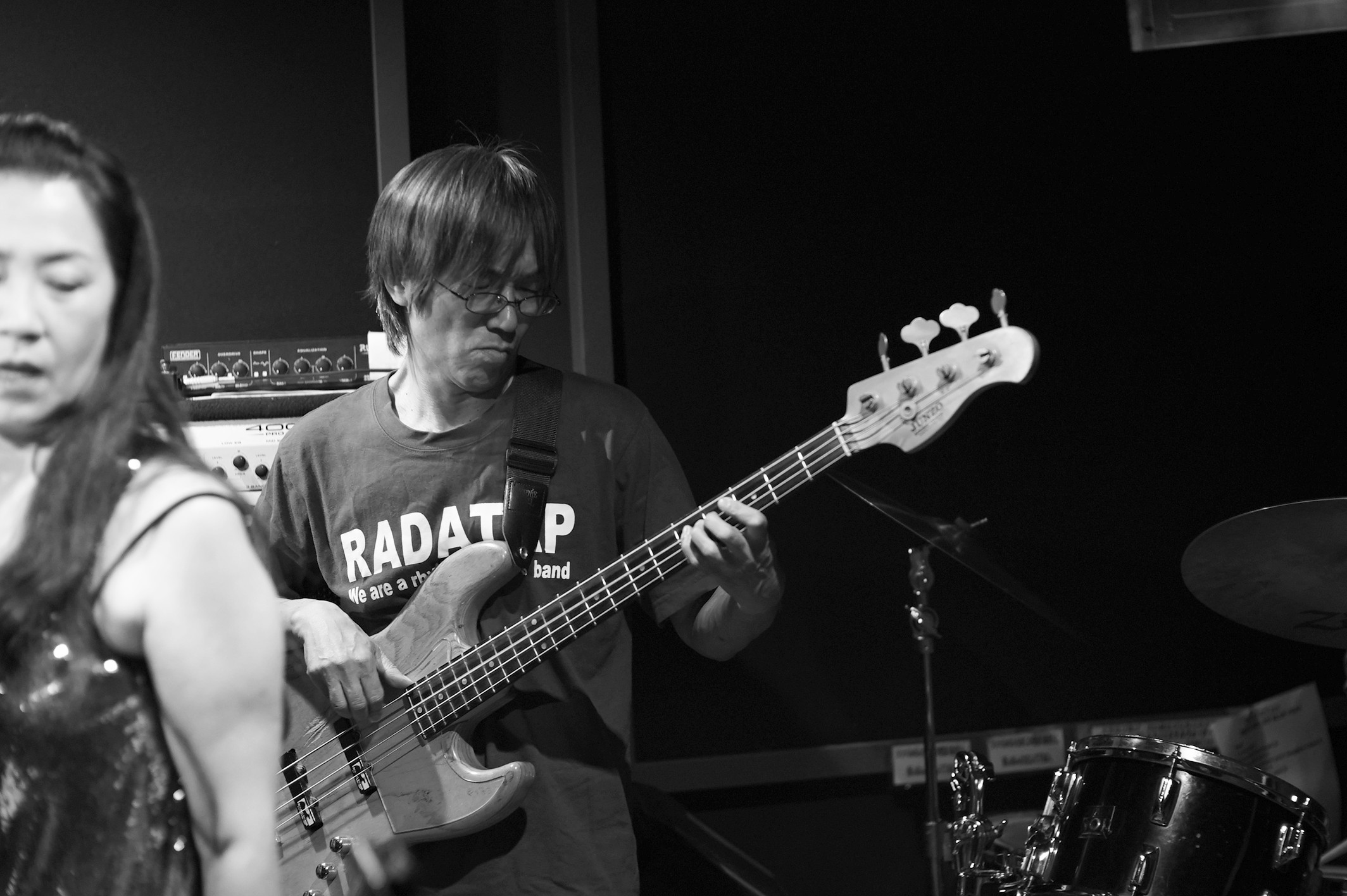 以前、バックメンバーはRADATAPとプリントしたTシャツを着るようになってましたが、今年からか「Tシャツ不要」ということになったのですが、相変わらずヘソ曲がりの人が約1名(笑)