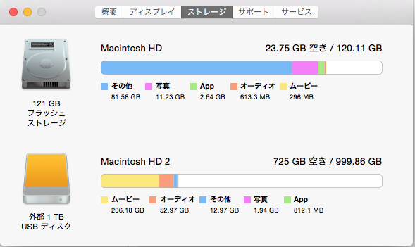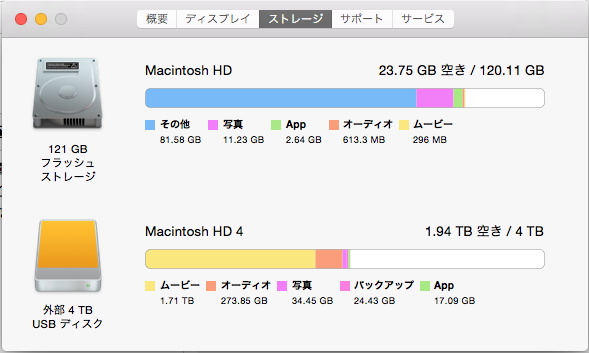 外付けHDDがこんなに空き容量が増えた。